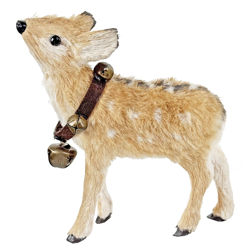 Standing fawn with collar, decorated with exquisite details, 23 cm tall. Made with high-quality materials, it is ideal for adding a touch of elegance to any home environment. The delicate design and careful details make it a unique and fascinating piece.