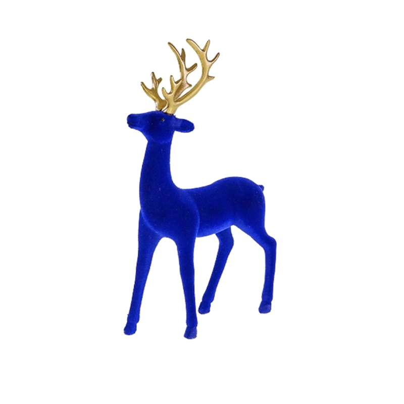 Flocked Reindeer With Gold Antlers H24.5cm Blue | Vertecchi Selection | Selezione Vertecchi