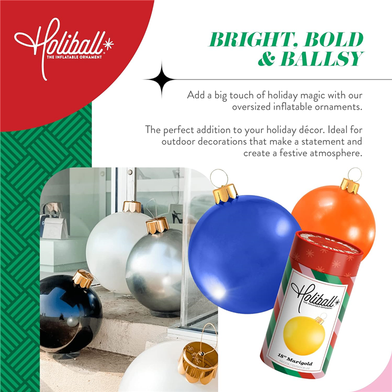 HOLIBALL INFLATABLE ORNAMENT® IS BIGGER THAN LIFE! INFLATABLE, DEFLATABLE, REUSABLE AND EASY TO STORE.