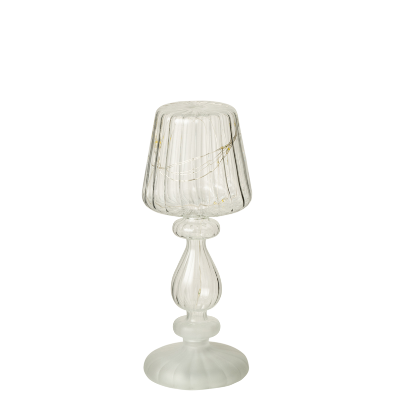 Clear glass lamp with LED lighting, 20 cm high. Elegant and modern design, ideal for adding a touch of style to any space. Perfect for creating a welcoming atmosphere thanks to the soft LED lighting.