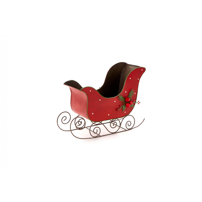 Red Metal Sleigh With Berries 27x20.5x13.5cm | Vertecchi Selection. | Selezione Vertecchi