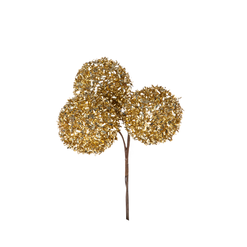 PICK WITH THREE DECORATIVE LUREX BALLS, HEIGHT 18 CM, GOLD COLOR.