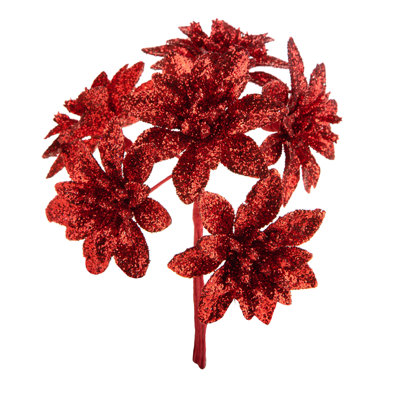 Pick Mini Poinsettia Glitter 13cm 6pcs Red | | Bianchi Dino