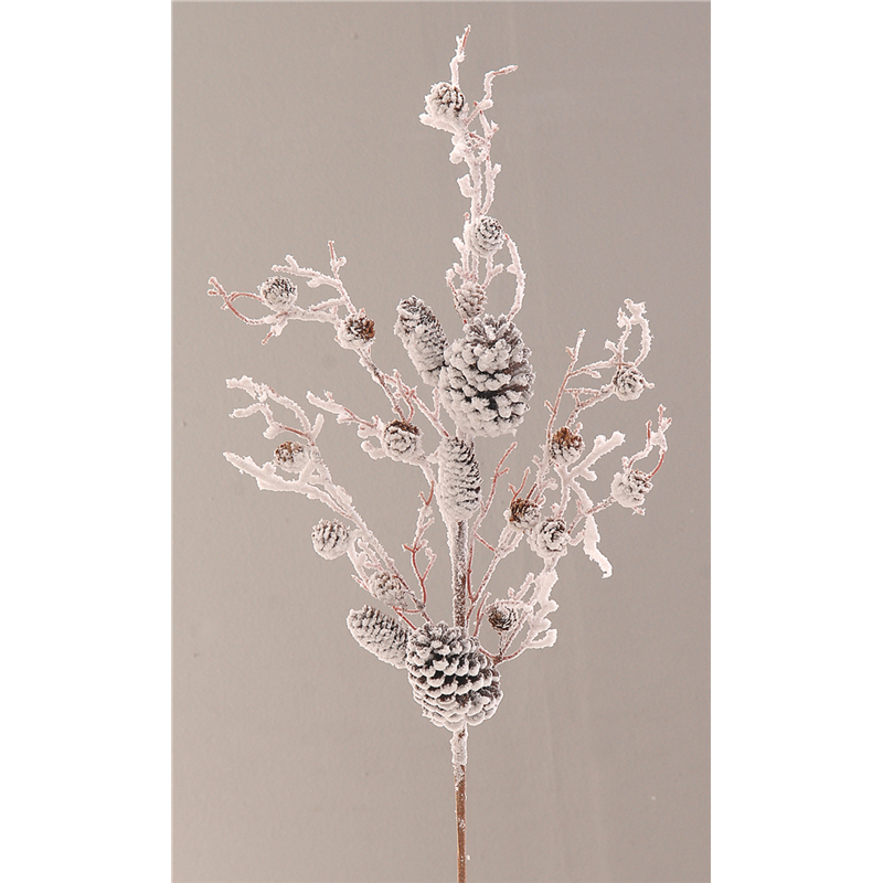 A SNOW-COVERED PINE CONE BRANCH, 80 CM HIGH, IDEAL FOR ENHANCEMENT TO CHRISTMAS AND WINTER DECORATIONS WITH A NATURAL AND ELEGANT TOUCH. MADE OF HIGH-QUALITY MATERIALS, THIS BRANCH HAS A REALISTIC FINISH THAT EVOKE THE ATMOSPHERE OF A SNOWY LANDSCAPE. PERFECT FOR FLORAL ARRANGEMENTS, TABLE CENTERPIECES, OR AS A STAND-ALONE DECORATIVE ELEMENT.