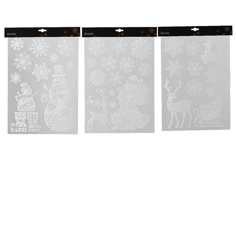 40 cm tall decorative window decal depicting snowy characters, ideal for creating a festive and welcoming atmosphere during the winter season. Made by Decoris, it'-s perfect for embellishing windows and shop windows with a touch of Christmas magic.