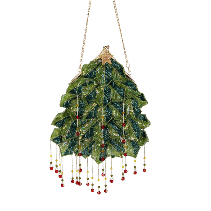THE "-VELVET AND BEADED TREE"- PURSE IS AN ELEGANT AND FESTIVE ACCESSORY, PERFECT FOR ADDING A TOUCH OF CLASS TO CHRISTMAS CELEBRATIONS. IT MEASURES 31 CM AND IS DECORATED IN GREEN, RED, AND GOLD, RECALLING CHRISTMAS TRADITIONS. MADE OF VELVET, IT FEATURES REFINED BEADED DETAILS THAT FORM A TREE-SHAPED MOTIF, GIVING THE PIECE A LUXURIOUS AND SOPHISTICATED LOOK. THIS PURSE IS IDEAL FOR COMPLETING A CHRISTMAS OUTFIT OR AS A REFINED DECORATION.