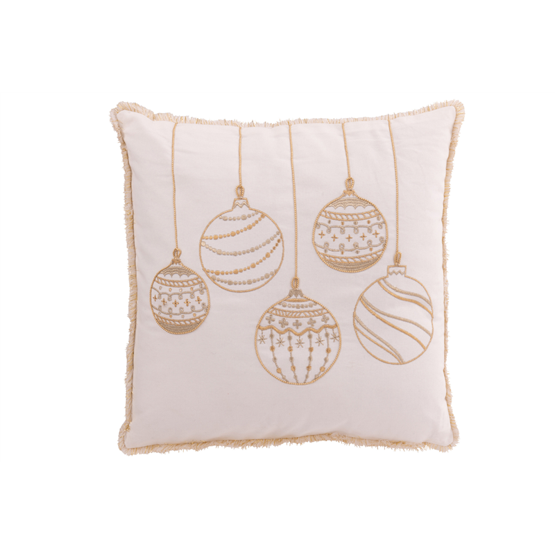 DECORATIVE CUSHION WITH RELIEF BALLS IN WHITE AND GOLD, SIZE 45 CM, IDEAL FOR ADDING AN ELEGANT AND SOPHISTICATED TOUCH TO ANY ROOM.