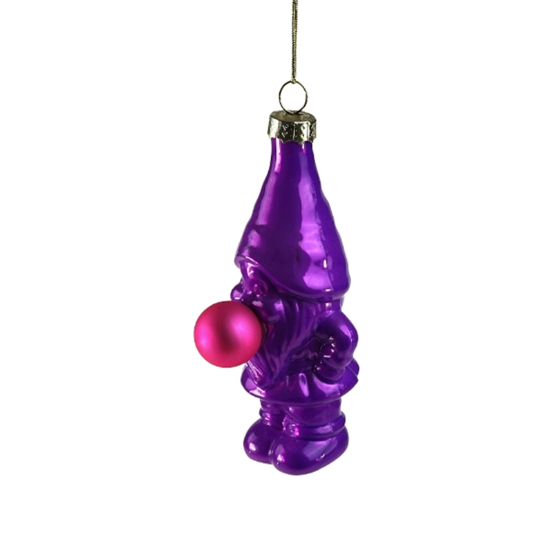 Purple 10cm Glass Gnome Ornament Bubbles | Vertecchi Selection | Selezione Vertecchi