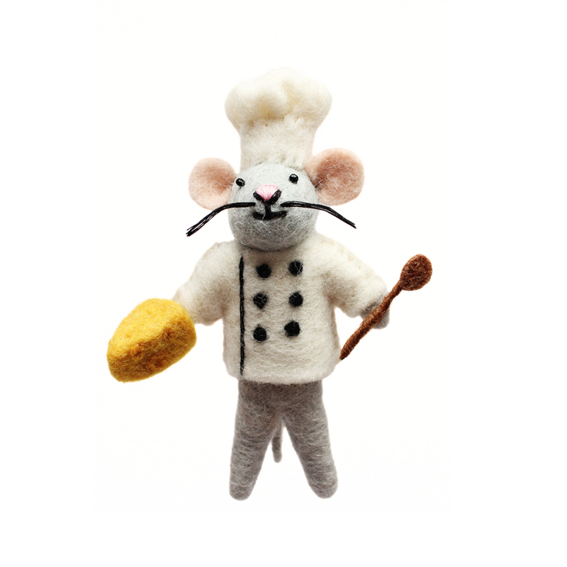 MICKEY MOUSE CHEF-INSPIRED FELT ORNAMENT, HANDCRAFTED WITH EXACT DETAILS AND VIBRANT COLORS. PERFECT FOR DECORATING YOUR KITCHEN OR ADDING A TOUCH OF DISNEY MAGIC TO YOUR HOME. ALSO AN IDEAL GIFT FOR MICKEY MOUSE FANS OR ANYONE WHO LOVES COLLECTING UNIQUE ITEMS.