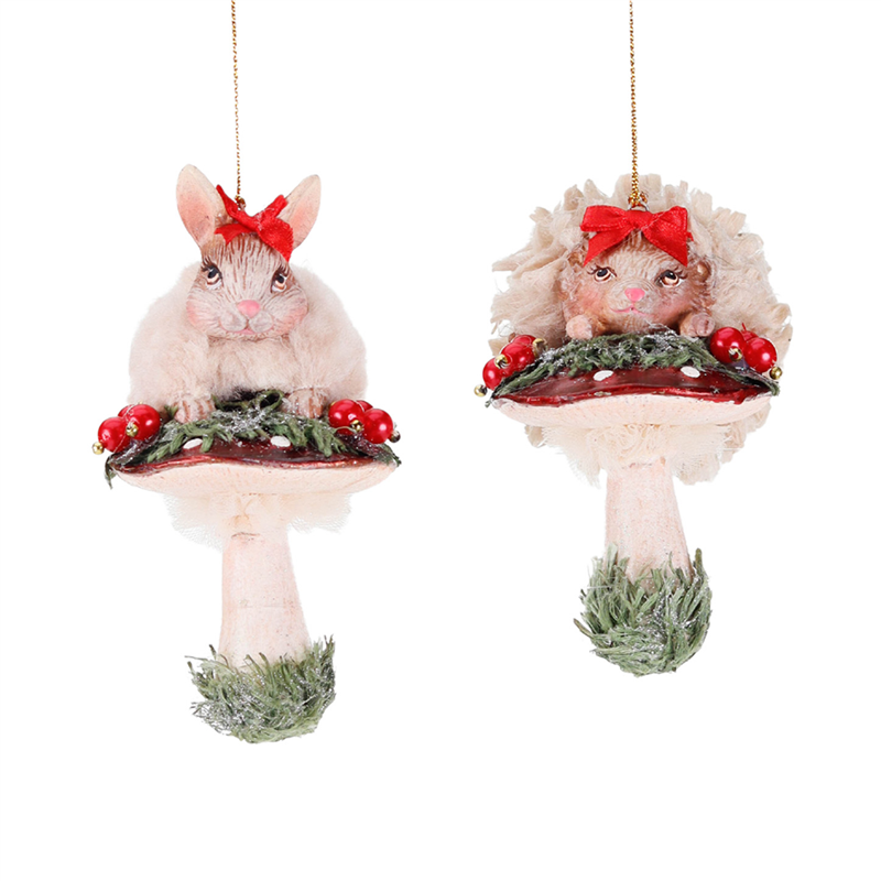 Ornamento Coniglio/riccio Fiocco Sul Fungo 12 1pz. Assort. Red White Green | Goodwill