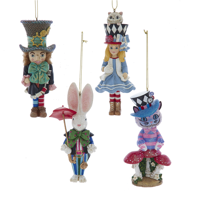 A COLLECTIBLE ORNAMENT INSPIRED BY THE ENCHANTED WORLD OF ALICE IN WONDERLAND, FEATURING ICONIC CHARACTERS SUCH AS ALICE, THE MAD HATTER, THE WHITE RABBIT, AND THE CHESTNUT CAT. CRAFTED WITH EXQUISITE DETAILS, IT'-S PERFECT FOR ADDING A TOUCH OF MAGIC AND IMAGINATION TO YOUR COLLECTION OR DECORATION.