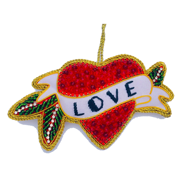 Ornamento Cuore Rosso Decorato Scritta Home