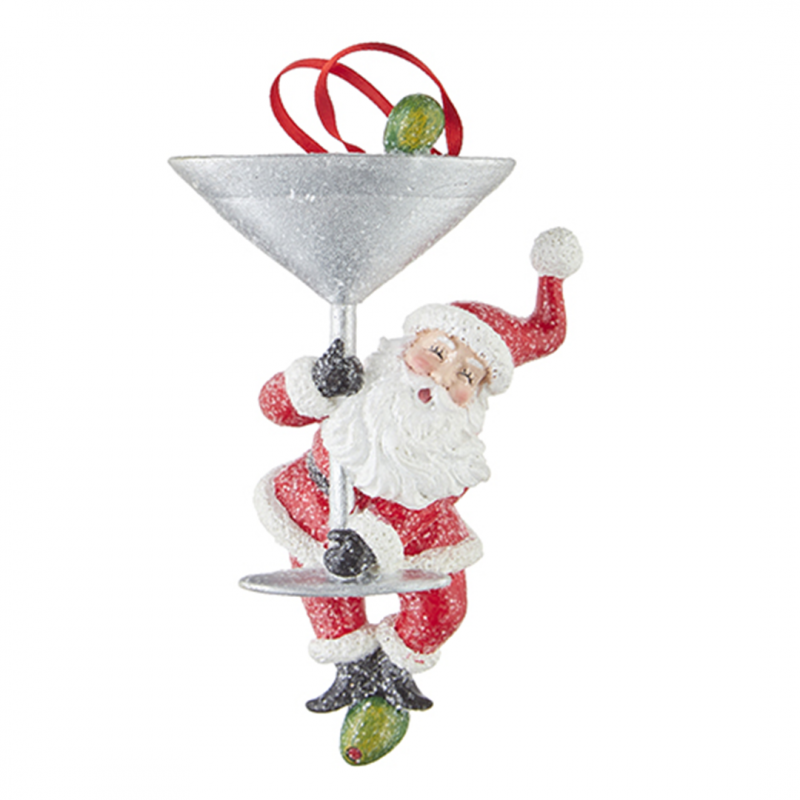 Resin ornament depicting Santa Claus with a cocktail glass in hand, part of the Vertecchi Selection. This charming decoration adds a festive and original touch to your Christmas decor, combining holiday cheer with a fun and modern detail. Perfect for those who love to decorate their home with unique and full-of-personality elements.