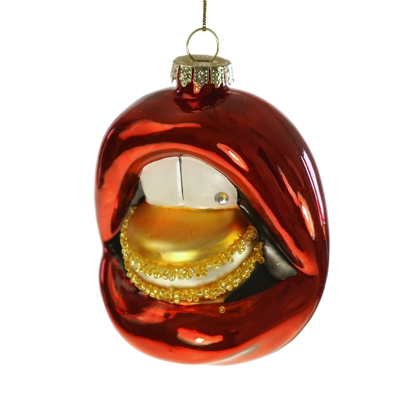 Glass Ornament Lips With Macaron 9cm Pink-Red Vertecchi Selection