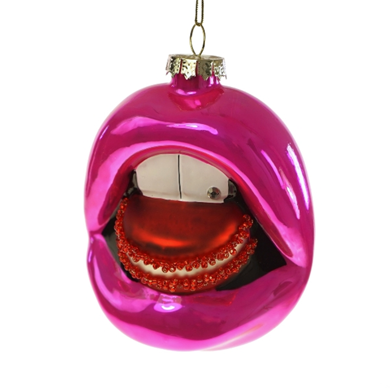 Glass Ornament Lips With Macaron 9cm Pink-Red | Vertecchi Selection | Selezione Vertecchi