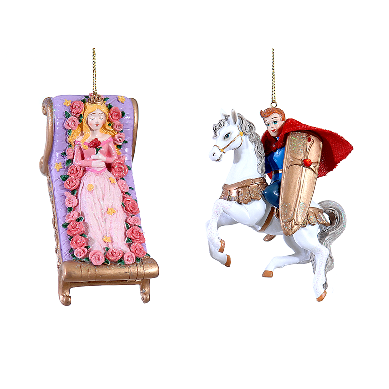 SINGLE POLYRESIN ORNAMENT DEPICTING THE PRINCE AND SLEEPING BEAUTY, PART OF THE VERTECCHI SELECTION, IDEAL FOR ADDING A FAIRYTALE AND ROMANTIC TOUCH TO INTERIOR DECORATIONS OR FOR COLLECTORS OF FAIRYTALE-INSPIRED OBJECTS.
