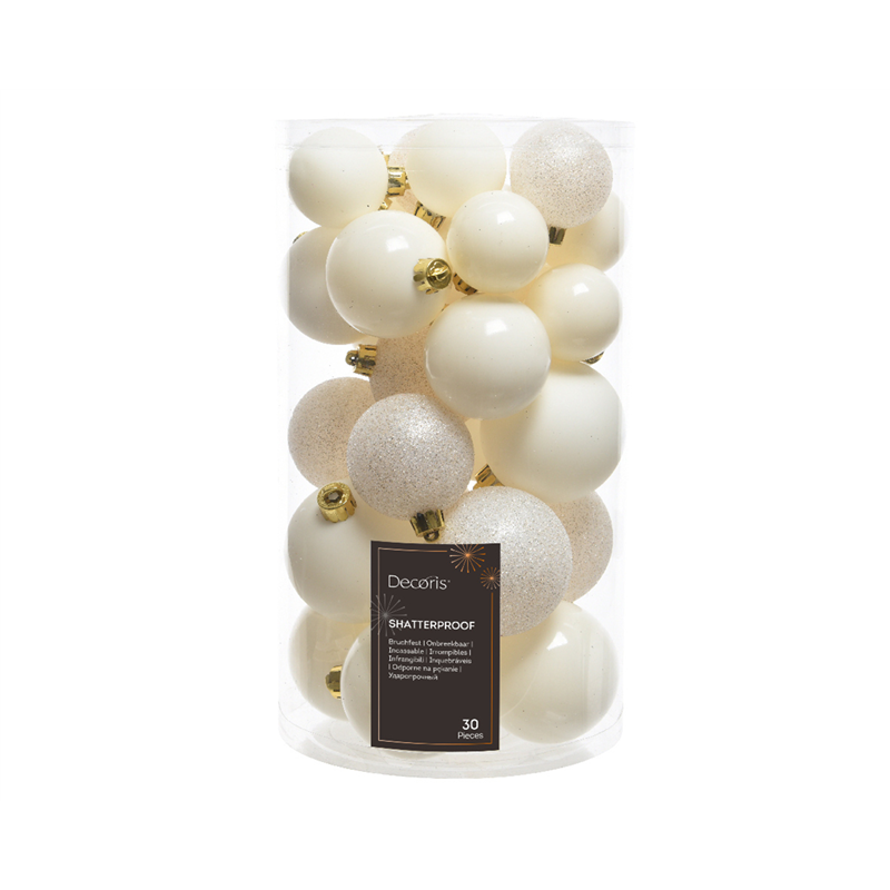 Wool White Glitter Glossy Opaque Plastic Sphere Mix 30pcs | | Decoris