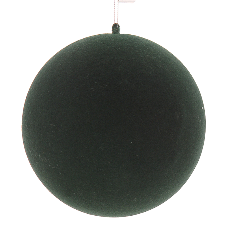 DECORATIVE SPHERE 15 CM IN DIAMETER, CHARACTERIZED BY A DARK GREEN FLOCKED SURFACE, IDEAL FOR ADDING AN ELEGANT AND SOPHISTICATED TOUCH TO ANY SPACE.