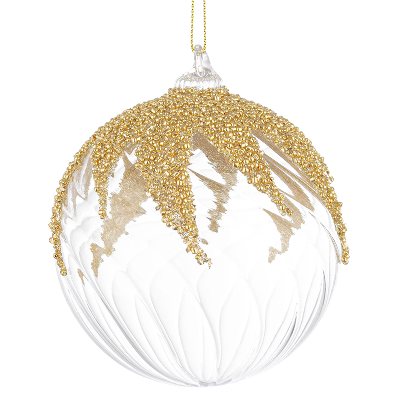 THE 10CM TRANSPARENT GOLD VORTEX GLASS SPHERE IS AN ELEGANT DECORATIVE OBJECT WITH A DIAMETER OF 10CM. MADE OF TRANSPARENT GLASS, IT FEATURES A REFINED VORTEX EFFECT WITH GOLD DETAILS, GIVING A TOUCH OF LUXURY AND MODERNITY TO ANY SPACE. PERFECT FOR DISPLAY ON SHELVES, TABLES, OR AS PART OF A DECORATIVE COMPOSITION.