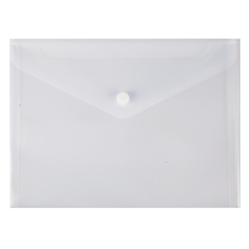 TRANSPARENT/COLOURED HEAVY POLYPROPYLENE ENVELOPE, WITH PRESSURE BUTTON CLOSURE, CAPABLE OF CONTAINING DOCUMENTS AND OBJECTS IN DIFFERENT FORMATS