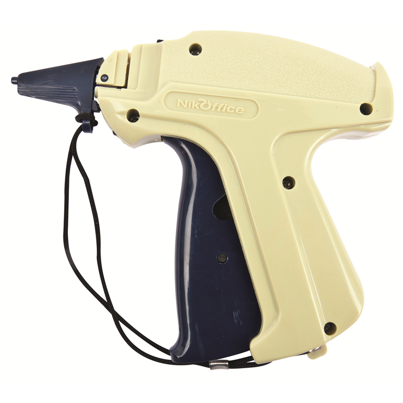 Manual gun for inserting nylon threads, made of shockproof plastic, ideal for labeling with sign tags, clothing and fabrics. Simple to use with needle housing in a special cap.