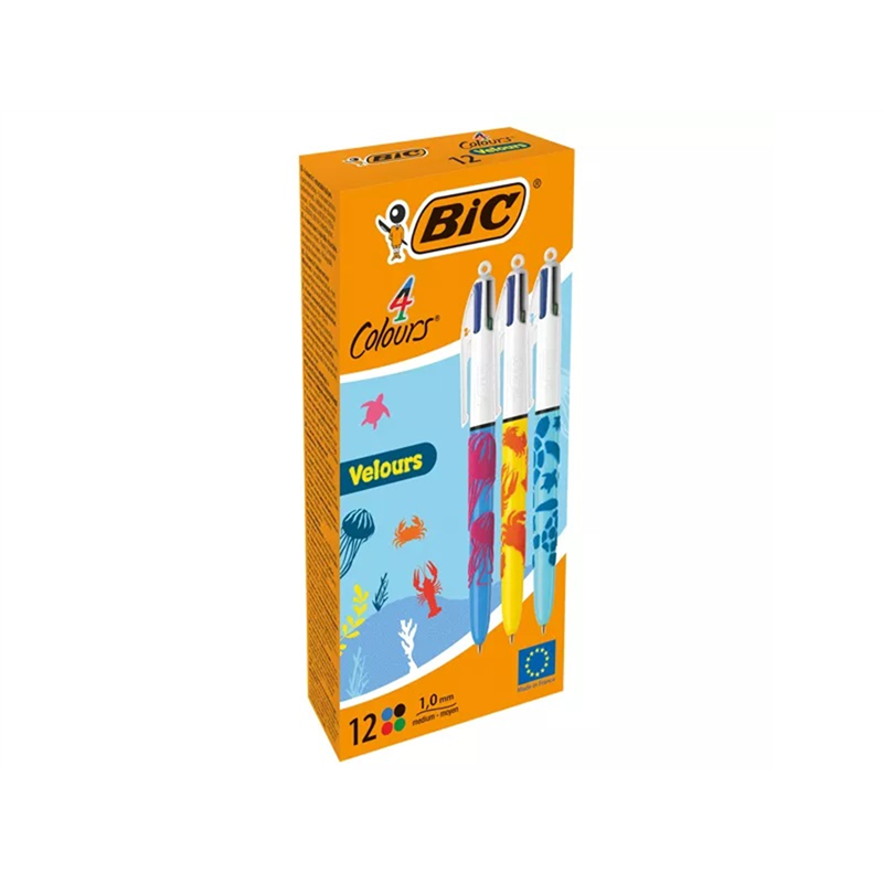 THE BIC VELOURS 4-COLOUR BALLPOINT IS A MULTIFUNCTIONAL PEN FEATURING AN ELEGANT AND SOPHISTICATED DESIGN WITH A VELVET FINISH. IT OFFERS FOUR INK COLOURS IN A SINGLE PEN, ALLOWING YOU TO EASILY SWITCH BETWEEN THE AVAILABLE OPTIONS FOR VERSATILE AND CUSTOMISED WRITING.