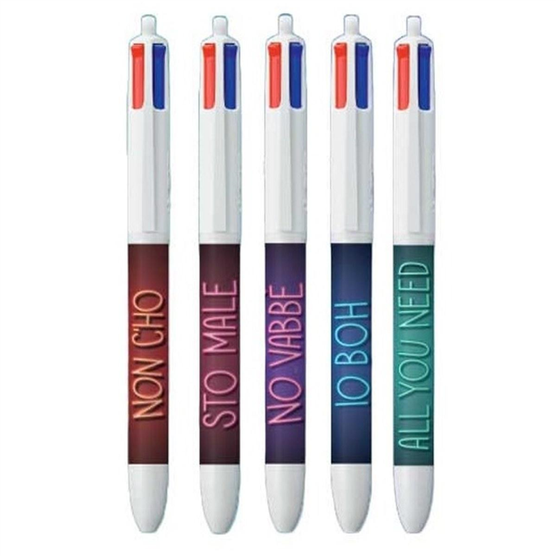 THE BIC WEBBOH 4-COLOUR BALLPOINT IS A MULTIFUNCTIONAL PEN THAT INCLUDES FOUR INK COLOURS IN A SINGLE INSTRUMENT: BLUE, BLACK, RED AND GREEN. IDEAL FOR THOSE WHO LIKE TO CUSTOMISE NOTES AND DOCUMENTS WITH EASE, THE PEN FEATURES A PRACTICAL DESIGN AND A COMFORTABLE GRIP, PERFECT FOR DAILY USE.