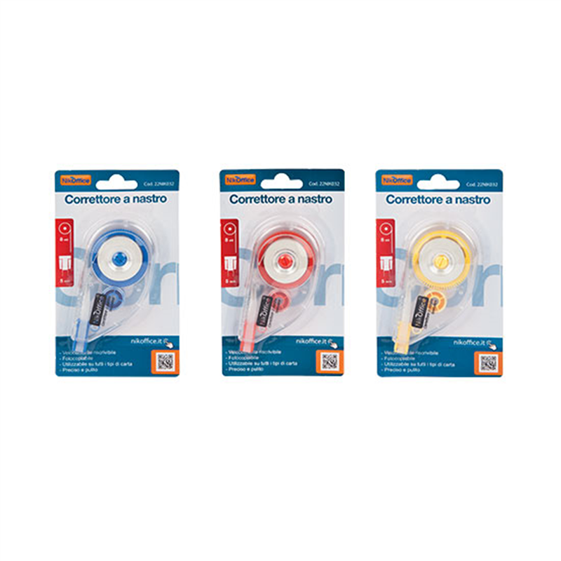 8 meter correction tape, 5 mm thick. Assorted colors.