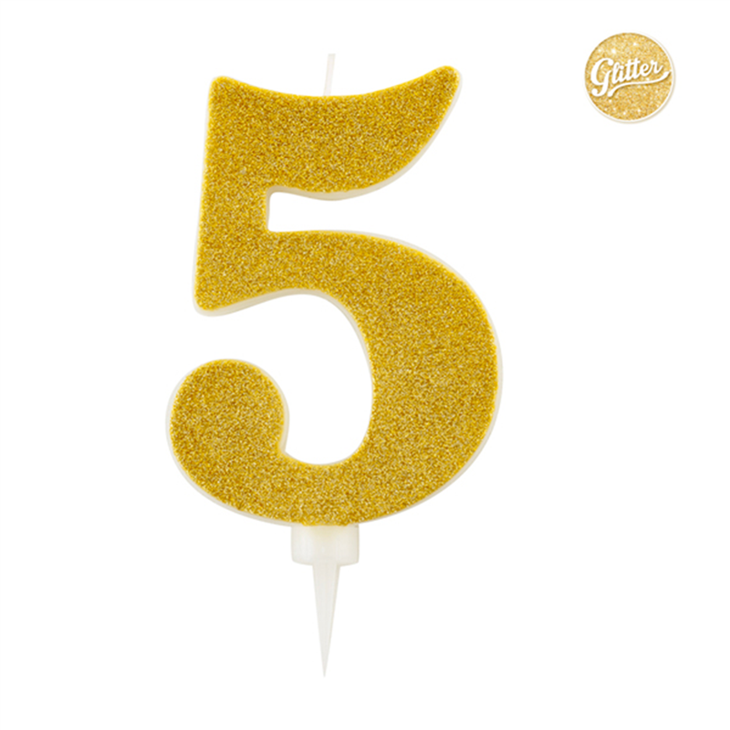 Giant Gold Glitter Number Candle 15.5cm 5 | | Givi