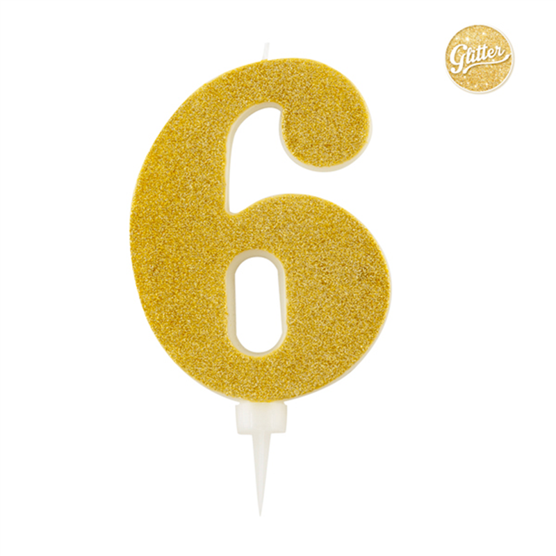 Giant Gold Glitter Number Candle 15.5cm 6 | | Givi
