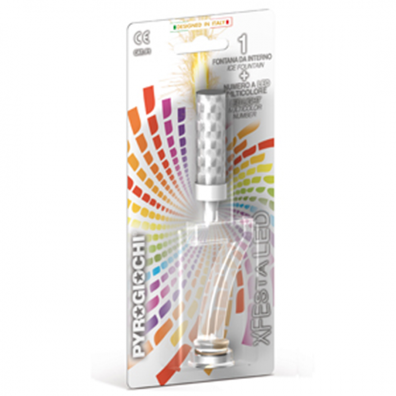 "Fontana Flamb� 20cm 1pc Multi 7 LED Number by Pyrogiochi is a decorative pyrotechnic device that emits sparkles similar to a luminous fountain. It is equipped with multicolored LED lights that create an appealing and festive visual effect, ideal for special events or celebrations."