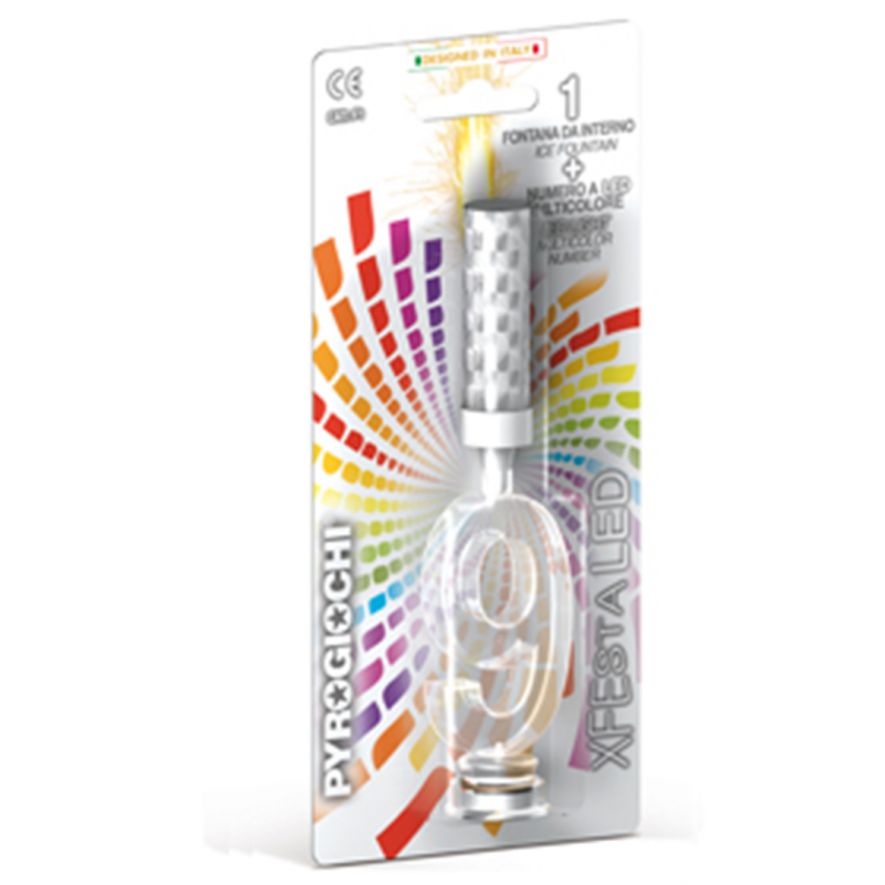Fontana Flamb� 20cm 1pc Number Led Multi 9 by Pyrogiochi is a decorative pyrotechnic device that emits sparkles similar to fireworks. It features multicolored LEDs for additional lighting effects.
