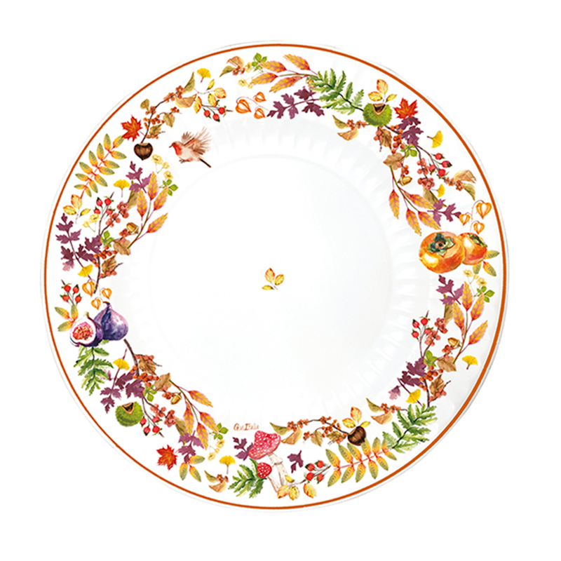 SET OF 6 LARGE PAPER PLATES WITH A DIAMETER OF 33 CM, IDEAL FOR CELEBRATING FALL IN STYLE. DECORATED WITH SEASONAL DESIGNS, THESE PLATES ARE PERFECT FOR ADDING A TOUCH OF COLOR AND WARMTH TO YOUR TABLES DURING FALL PARTIES. STURDY AND PRACTICAL, THEY ARE SUITABLE FOR SERVING ALL TYPES OF FOOD, MAKING YOUR EVENT EVEN MORE SPECIAL.