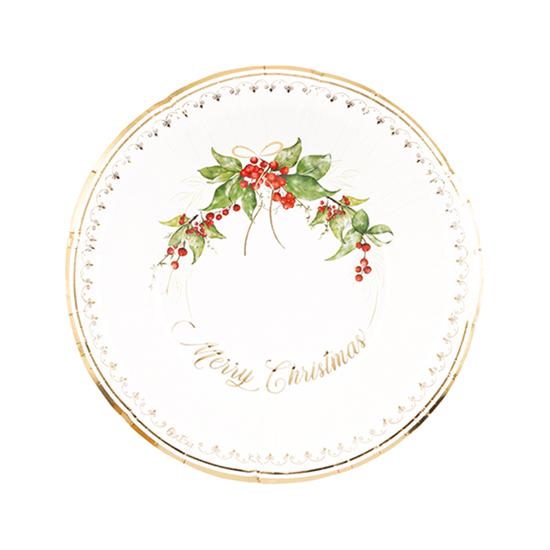 24 CM PAPER BOWL WITH GOLD GARLAND CHRISTMAS DECORATION, PACK OF 8. PERFECT FOR ENRICHEDING YOUR HOLIDAY TABLE WITH ELEGANCE AND PRACTICALITY.