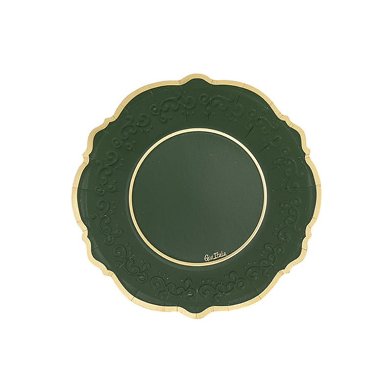 Liberty Gold Rim Paper Plate 21cm 8pcs Green Gold | | Givi