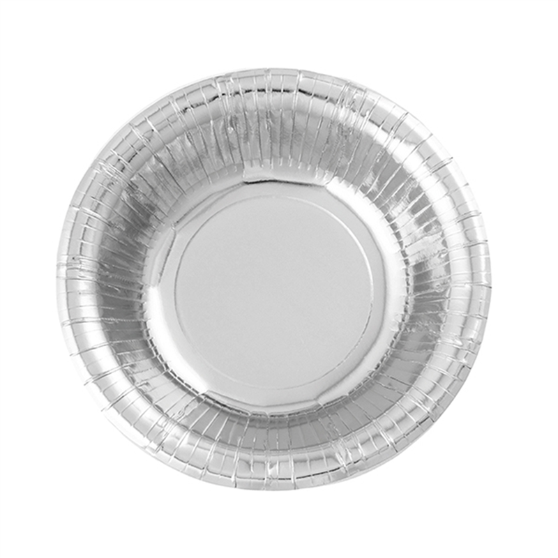 SILVER PAPER BOWL WITH A DIAMETER OF 24 CM, PACK OF 8 PIECES, MADE BY GIVI ITALIA SRL. PERFECT FOR ELEGANT EVENTS, WEDDINGS, PARTIES OR CELEBRATIONS, COMBINES PRACTICALITY AND STYLE WITH A REFINED DESIGN. DISPOSABLE AND RECYCLABLE, IDEAL FOR BRINGING A TOUCH OF LUXURY TO YOUR TABLE.