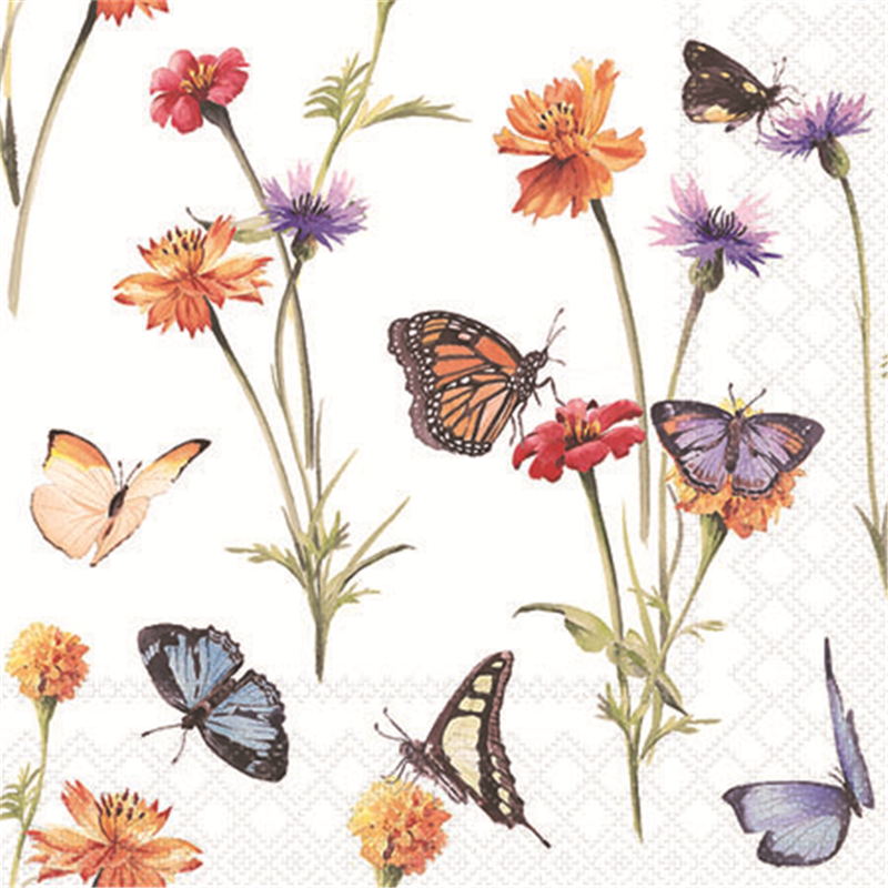 Decorated Paper Napkin 25x25 Butterfly Garden White | . | Ambiente