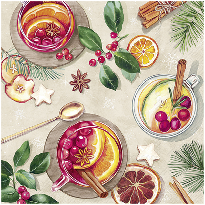 Christmas Napkin 33x33 Mulled Wine Cream | | Ihr
