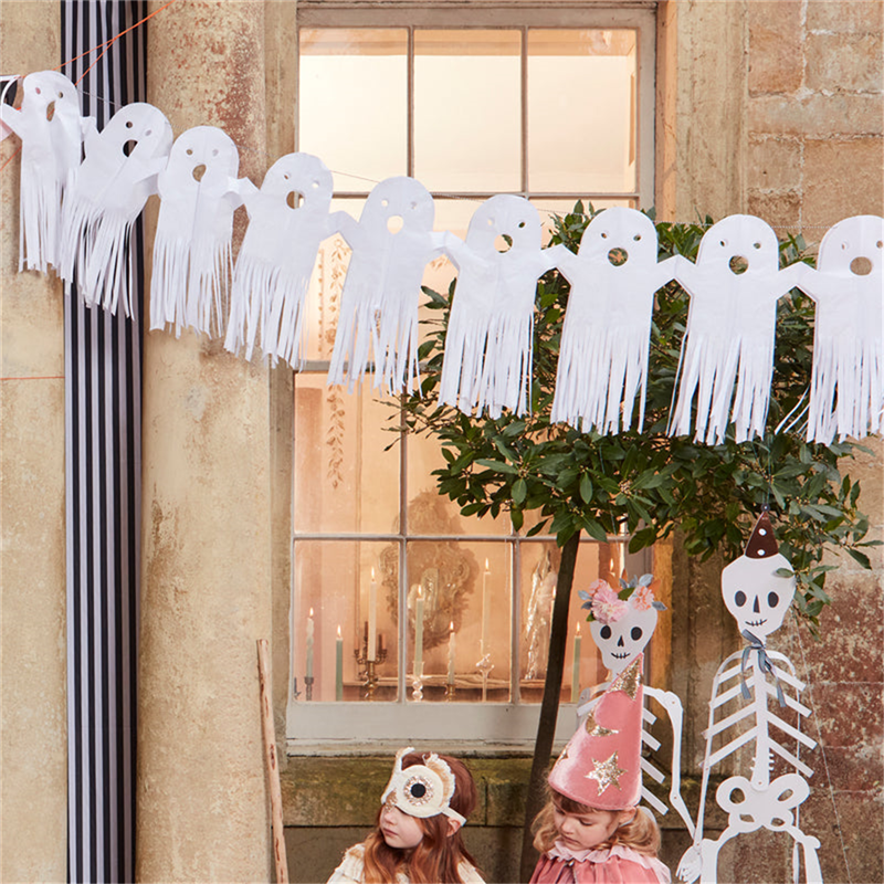 The meri meri white skeleton paper banner is 2 meters long and features a series of stylized and cute skeletons, perfect for decorating your halloween parties or themed events. Made with care and attention to detail, this banner adds a playful and spooky touch to your decoration, creating a fun and festive atmosphere.