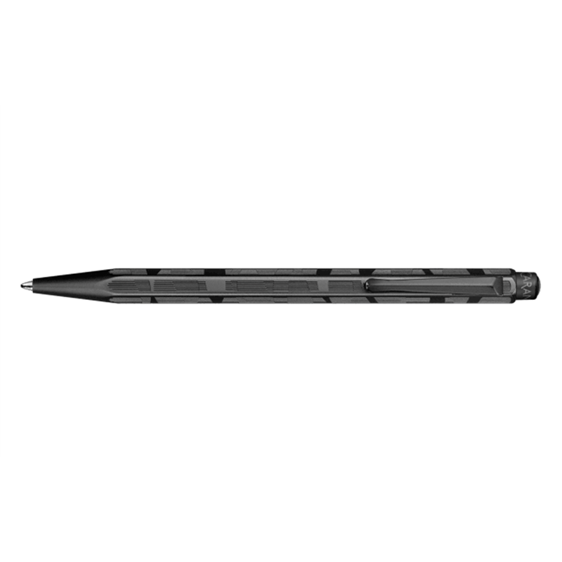 dimensions 128 mm x � 8 mm weight 26 g. black chrome hexagonal body sandblasted finish satin effect. complex guilloch� composed of deconstructed lines that give a contemporary touch. black chrome clip. caran d'-ache logo on the button