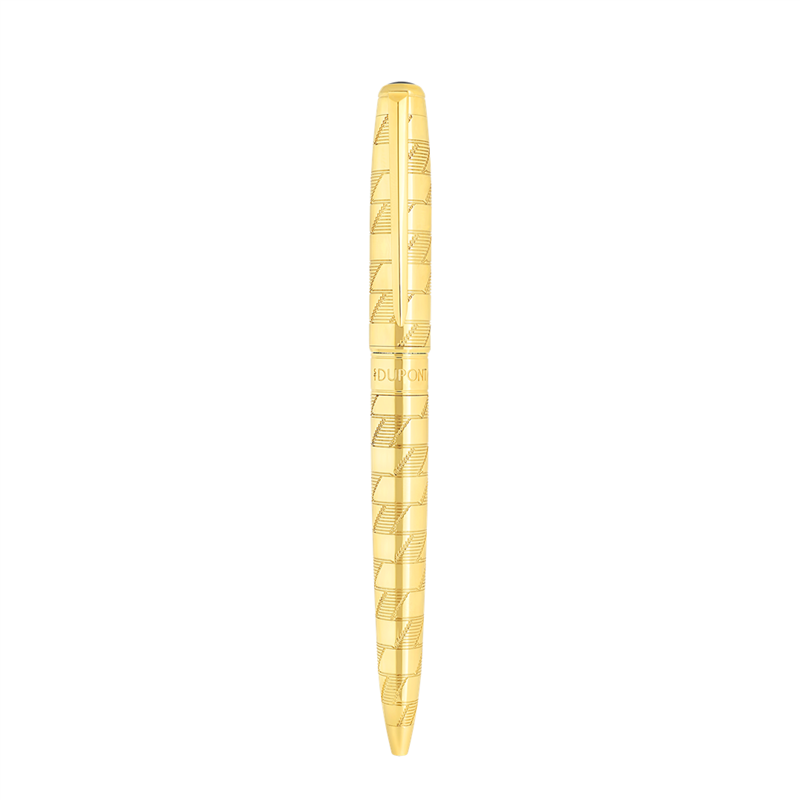 Metalwork, but also the art of lacquer and waxed canvas for leather goods, St. Dupont'-s expertise comes together in the Monogram 1872 collection. Rooted in their era, the pieces in the collection all feature the new St. Dupont logo: upright, decisive, and proud. Line D Eternity Large Watchmaker Guilloché Monogram 1872 Ballpoint Pen with Gold-Tone Finish. Articulated Sword Clip.