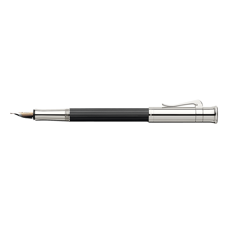Product Details: Ebony wood barrel. Platinum-plated metal nib. 18-karat two-tone gold nib with iridium tip. Hand-finished. Cartridge-converter filling system. Converter included. Dimensions: length 137 mm x ø 13 mm. Weight: 37 g. Elegant wooden gift box included. Classic Ebony Fountain Pen. The style of the Classic collection uniquely combines the natural, warm charisma of wood with the fresh elegance of platinum-plated surfaces. Classic writing instruments are available in platinum-plated, ebony, Pernambuco, or grenadilla versions, each combined with platinum-plated trim and a finely fluted barrel. The natural differences in the grain and color of the wood confirm that each writing instrument is unique.
