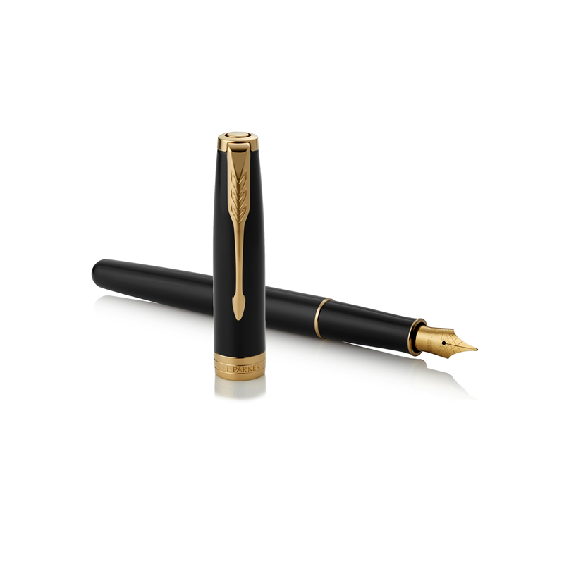 Features Sonnet Black Lacquer Fountain Pen with Fine Nib (Stainless Steel Nib) Black lacquer cap and barrel enhanced by gold-finish clip and trim Fountain pen design with stainless steel nib Impeccable hand assembly and quality control Available in a range of beautiful designs and finishes Packaged in an elegant Parker gift box