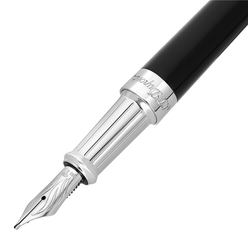 Black lacquer and palladium trim. New "-sword"- clip. Made in our workshops in Faverges, France. This fountain pen features a medium nib, for a writing thickness of approximately 0.55 mm.