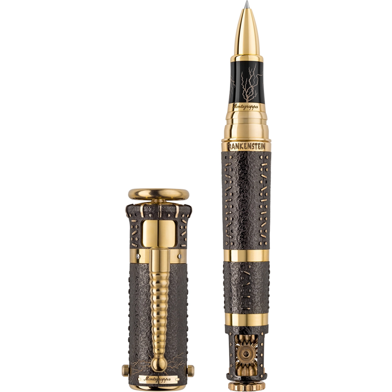 "-Vintage Hollywood settings and a medley of mechanical devices are the basic ingredients of this tribute to one of the icons of horror. The attraction between Montegrappa and the craziest science brings Dr. Frankenstein'-s creature back to life, among props and special effects that evoke the magic of a 1931 cinema classic. Energy pulses through its XXL body, entirely in brass, with ingenious complications that revive the senses, between fun and high-tech functionality. Features: Materials: brass, resin Packaging: special Hardware: brass Accessories included: refill Measurements: Length: 187.00 Diameter: 30.00 Weight: 251.00"-