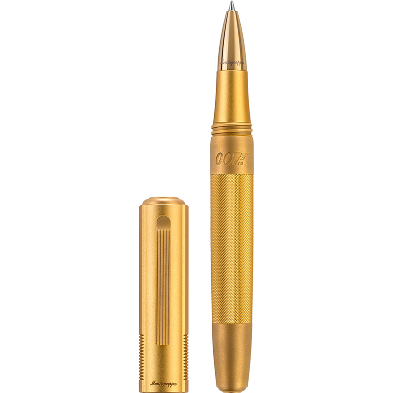 "-An anniversary re-edition of the 007 special issue celebrates 60 years of Goldfinger (1964): the film that established James Bond in the collective imagination. This edition, retouched from top to bottom, gives new substance to futuristic and strategic finishes defined by essential lines, sandblasted and embellished with an intense golden hue. Italian engineering gives incisive performance and refined classicism to a ruthlessly efficient design. Features: Materials: brass, anodized aluminum Packaging: special Hardware: brass, steel Accessories included: refill Measurements: Length: 142.00 Diameter: 16.80 Weight: 60.00"-