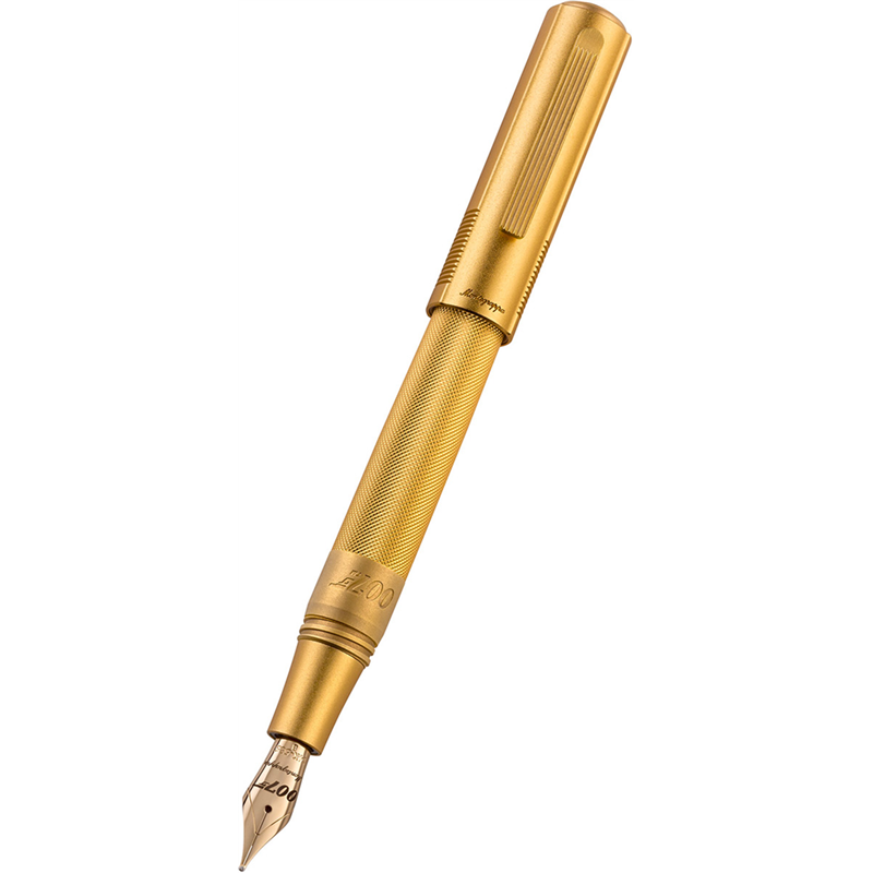"-An anniversary re-edition of the 007 special issue celebrates 60 years of Goldfinger (1964): the film that established James Bond in the collective imagination. This edition, retouched from top to bottom, gives new substance to futuristic and strategic finishes defined on essential lines, sandblasted and embellished with an intense golden hue. Italian engineering gives incisive performance and refined classicism to a ruthlessly efficient design. Features: Materials: anodized aluminum, brass Nib: 14k gold Packaging: special Filling: converter, cartridge Hardware: brass, steel Accessories included: converter, 2 cartridges Measurements: Length: 142.00 Diameter: 16.00 Weight: 55.00"-
