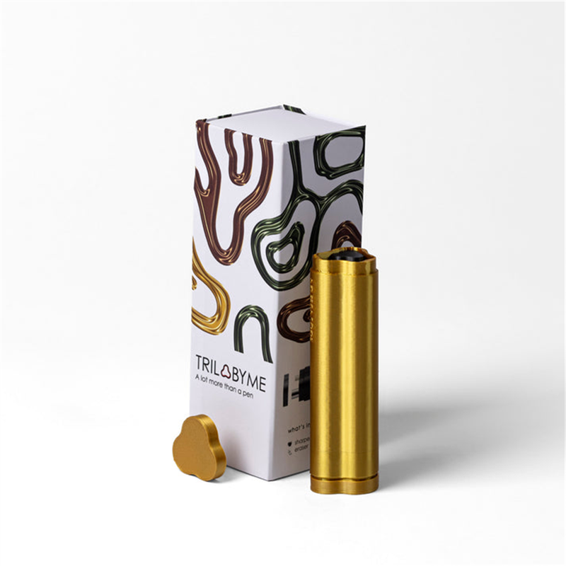 egopuntoemme portable case - egopuntoemme trilobate shape material pla magnetic caps 3d printing production made in italy, bologna includes: cento3.e multifunction tool - 1 graphite refill 1 black writing ball replacement - 2 colored wax crayons 2 highlighters - sharpener - white rubber soft touch packaging hand made