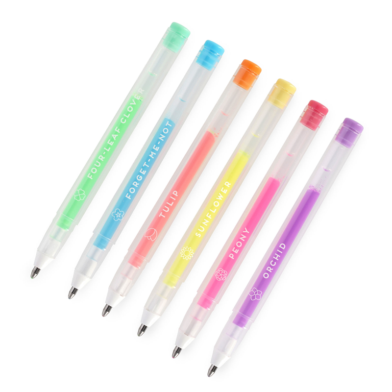 the set contains six gel pens in the shades of flowers and the scents of nature, to bring spring to your agenda and notebooks.