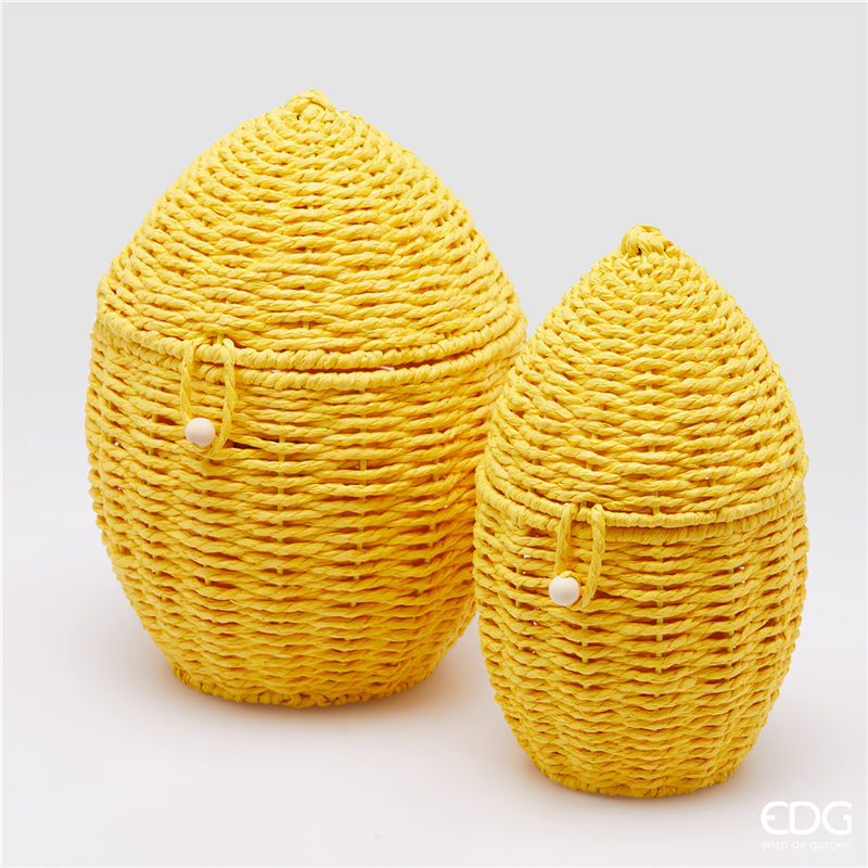 Cesto decorativo a forma di uovo, di colore giallo, della collezione Edg - Enzo De Gasperi, ideale per aggiungere un tocco di eleganza e colore agli ambienti. Realizzato con attenzione ai dettagli, si adatta perfettamente a diverse occasioni e arredi.